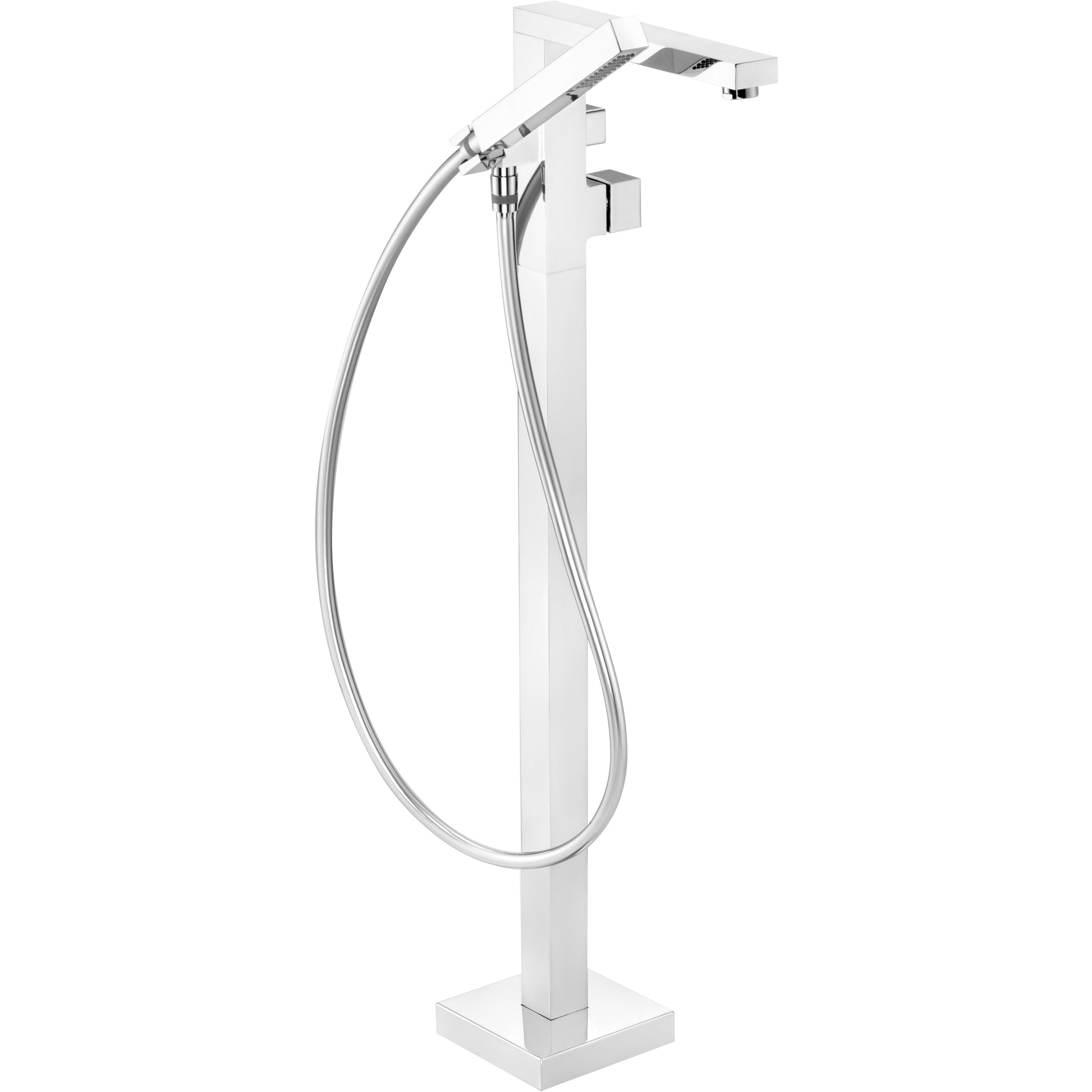 Deante BLUR Wannenarmatur bodenstehend mit Duschkopf Chrom vereint modernes Design mit technischer Präzision. Die hochglänzende Chromoberfläche unterstreicht den minimalistischen Charakter der Armatur.