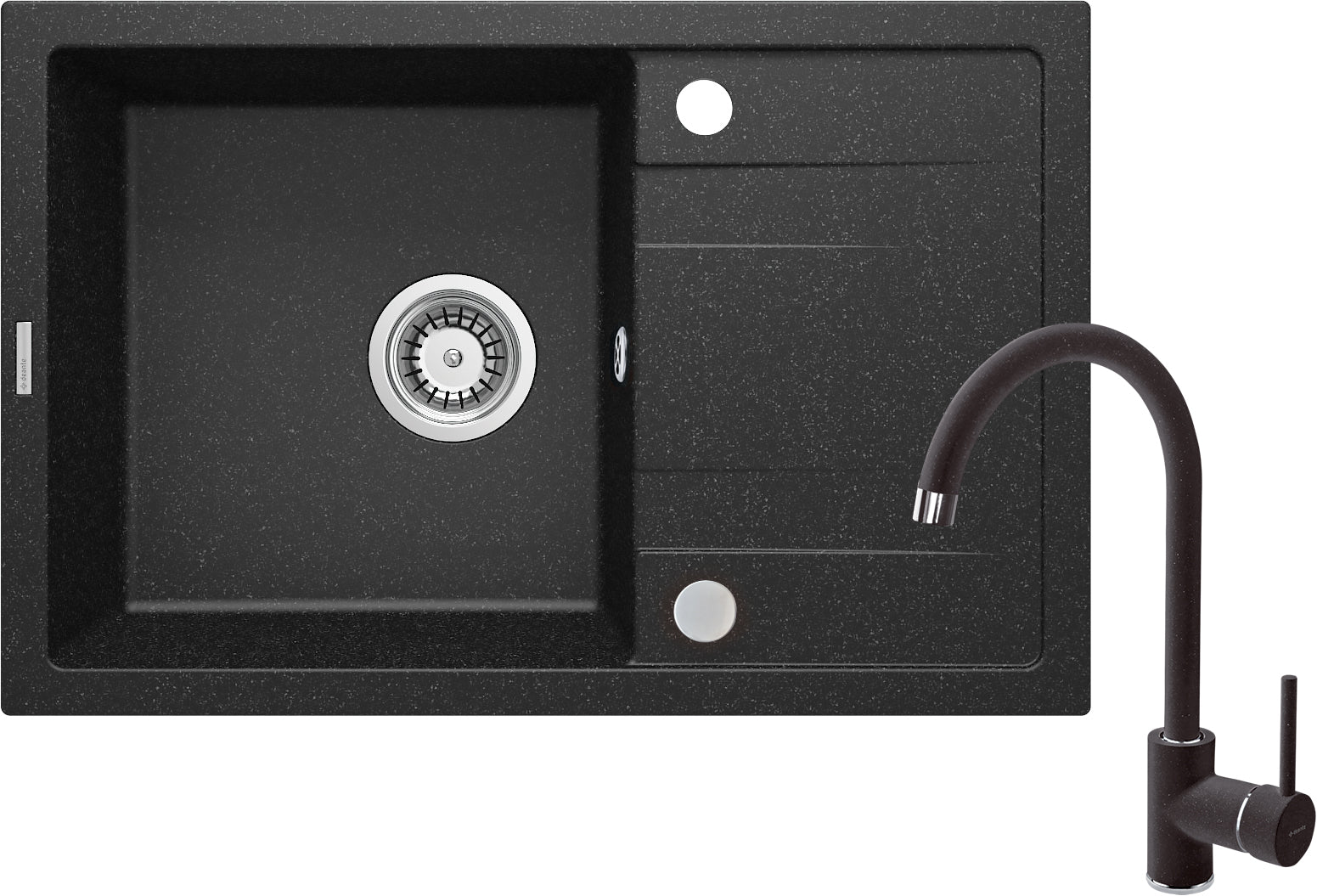 Deante CORIO Granitspülbecken mit Abtropffläche + Armatur (Set #1) Graphit