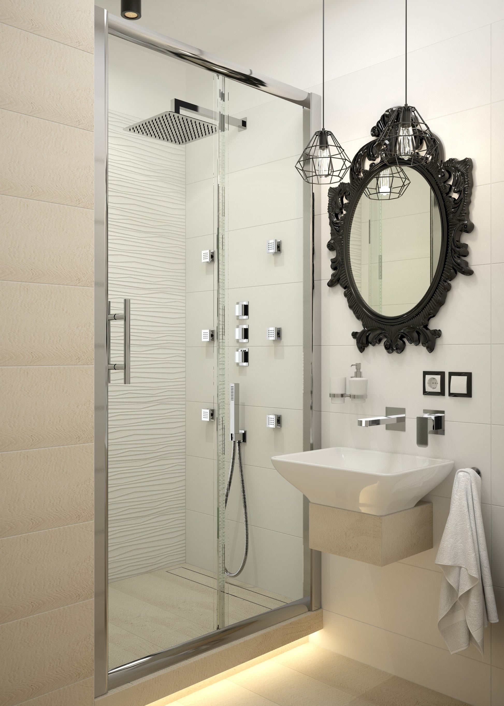 In Kombination mit einer Seitenwand entsteht eine vollwertige Eckdusche.