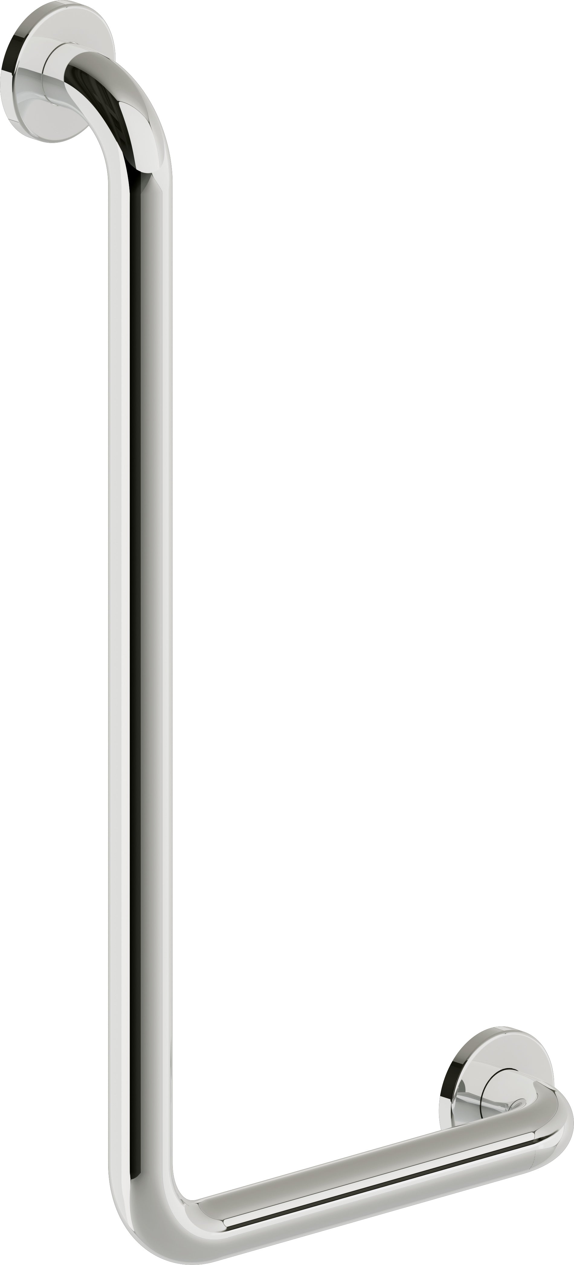 Der Deante LEHNEN Haltegriff in L-Form (links) bietet eine ergonomische Unterstützung für den Dusch- oder WC-Bereich. Gefertigt aus hochwertigem Edelstahl und ausgestattet mit glänzend verchromten Rosetten, ist dieser Winkelgriff ein zertifiziertes Medizinprodukt. Die linke Ausrichtung ermöglicht eine gezielte Hilfe beim Abstützen und Aufstehen, wobei die solide Konstruktion eine maximale Belastung von 150 kg sicher bewältigt.