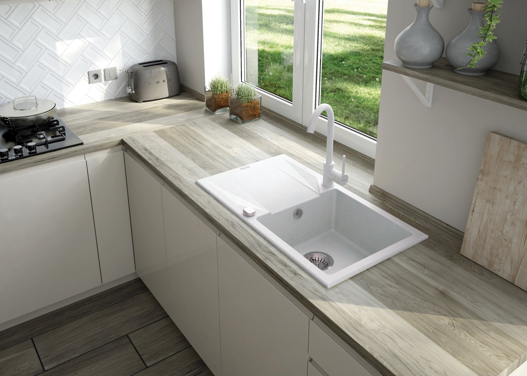 - Elegantes Alabaster-Finish für moderne, helle Küchenstile
