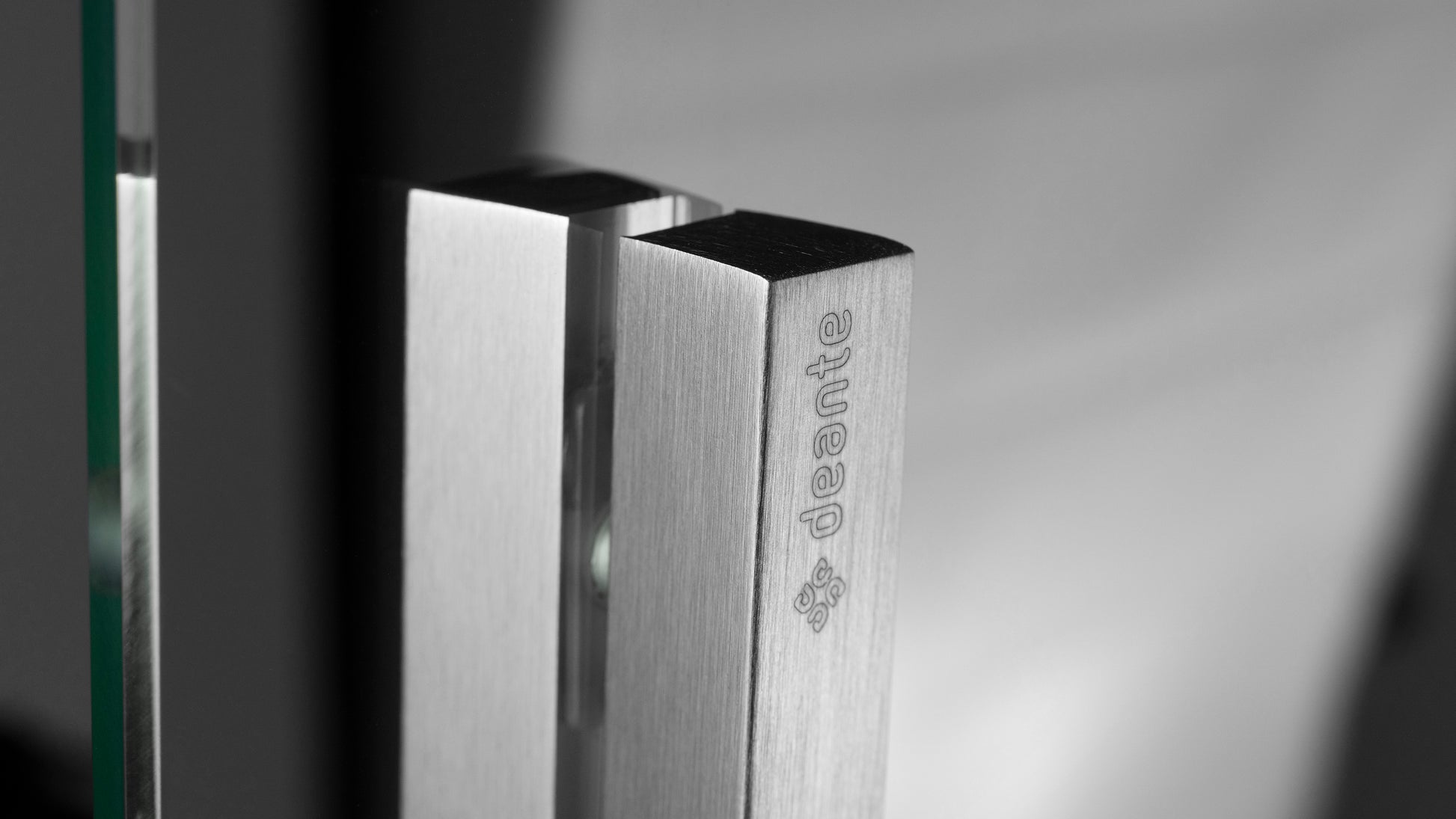 Die Deante PRIZMA Walk-In Duschwand als Schiebewand in gebürstetem Stahl vereint klare Linienführung mit technischer Eleganz.