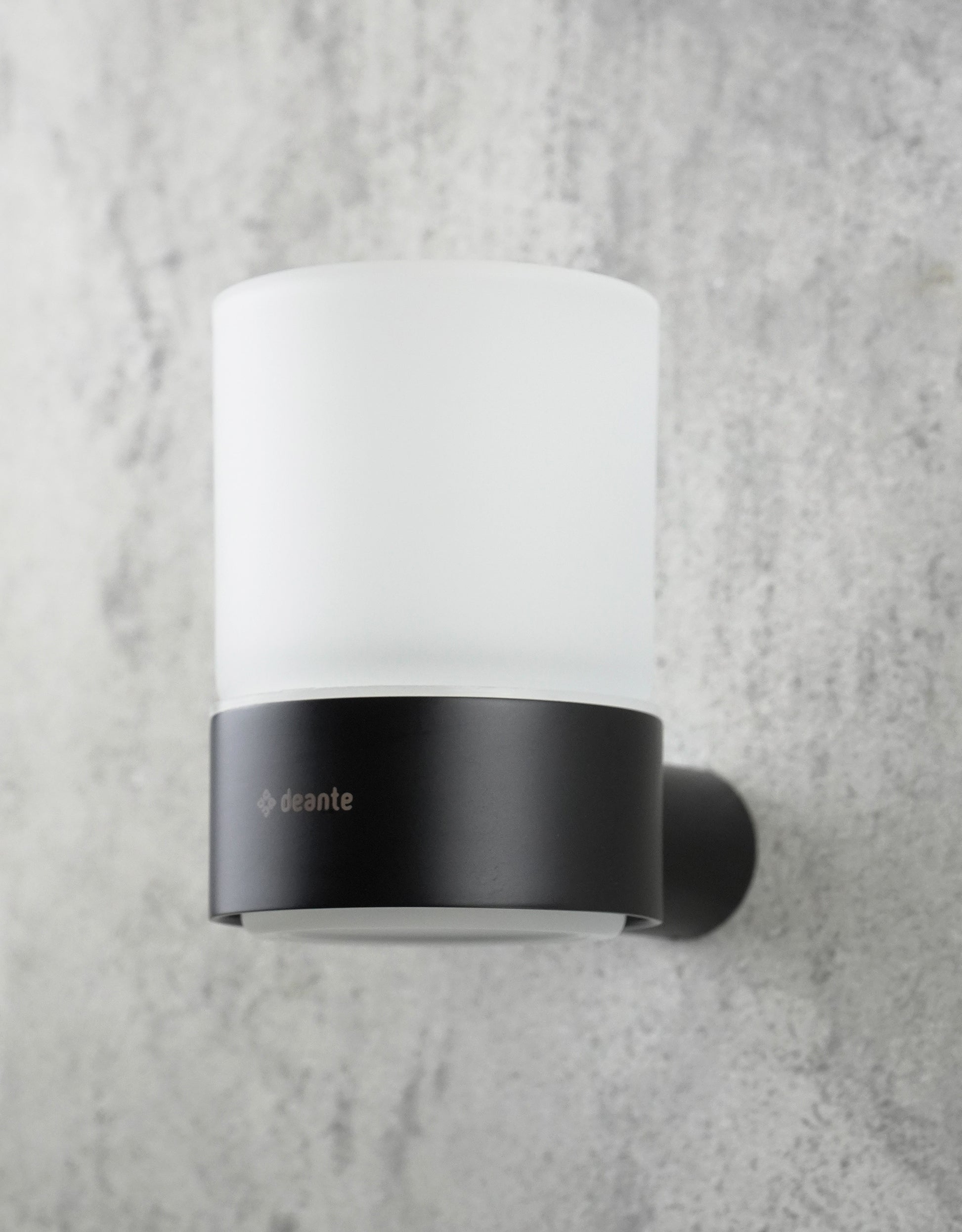 Deante ROUND Zahnputzbecher Wandmontage Schwarz bringt moderne Eleganz in Ihr Badezimmer. Der Becher aus mattiertem Glas und Edelstahl ist in edlem Mattschwarz gehalten und passt perfekt zu dunklen Armaturen und minimalistischen Designs.