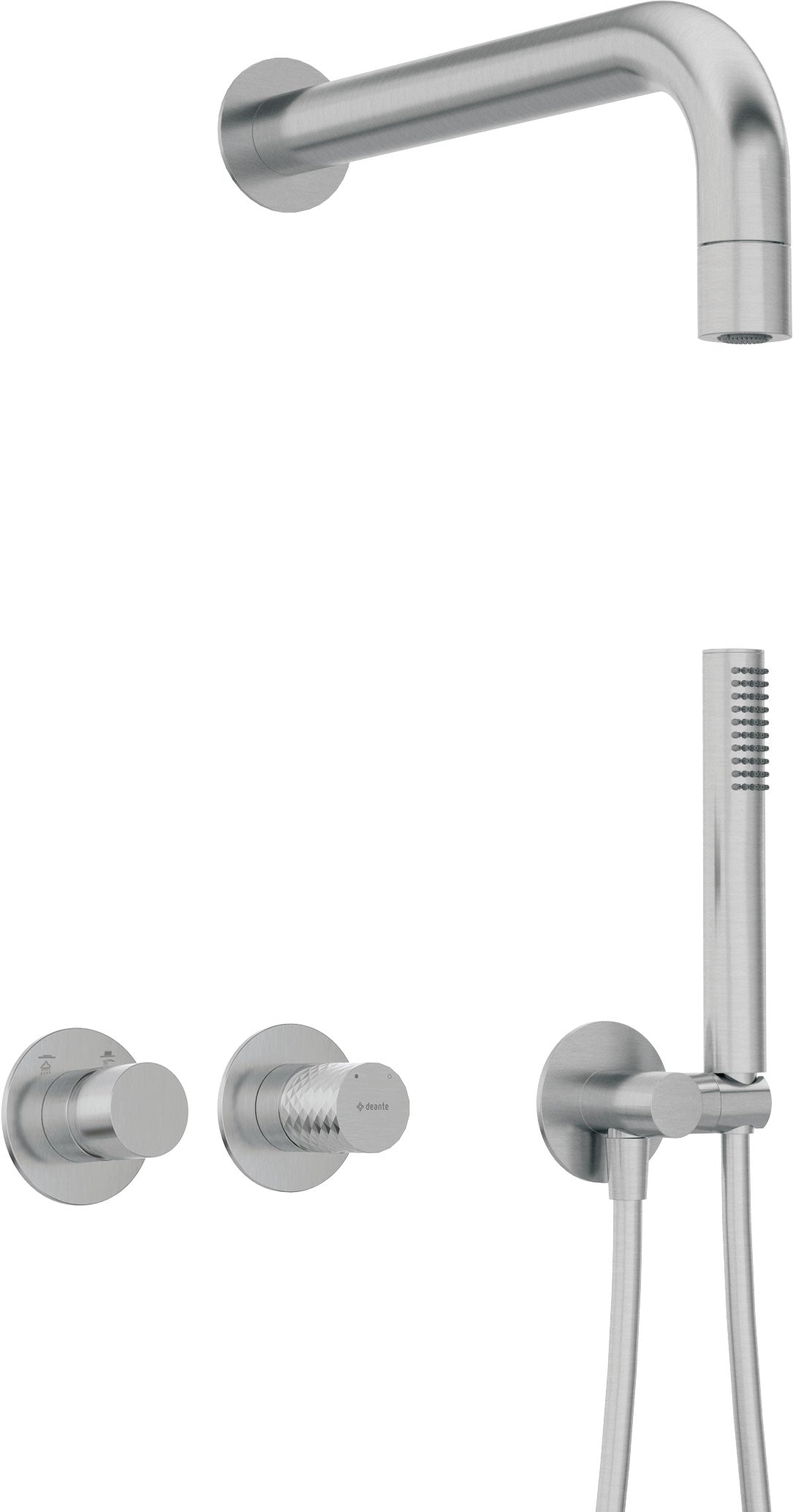 Deante SILIA HEXA Unterputz-Duschset horizontal mit Kegelstrahl-Brause Stahl gebürstet