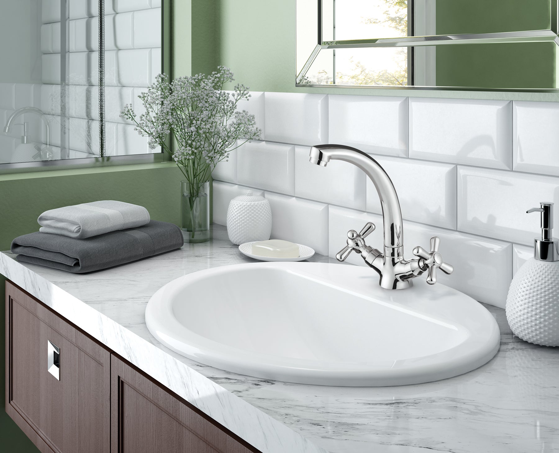 Deante SYMETRIO Waschbeckenarmatur Zweigriffarmatur lang Chrom überzeugt durch klare Linien und stilvolle Symmetrie.