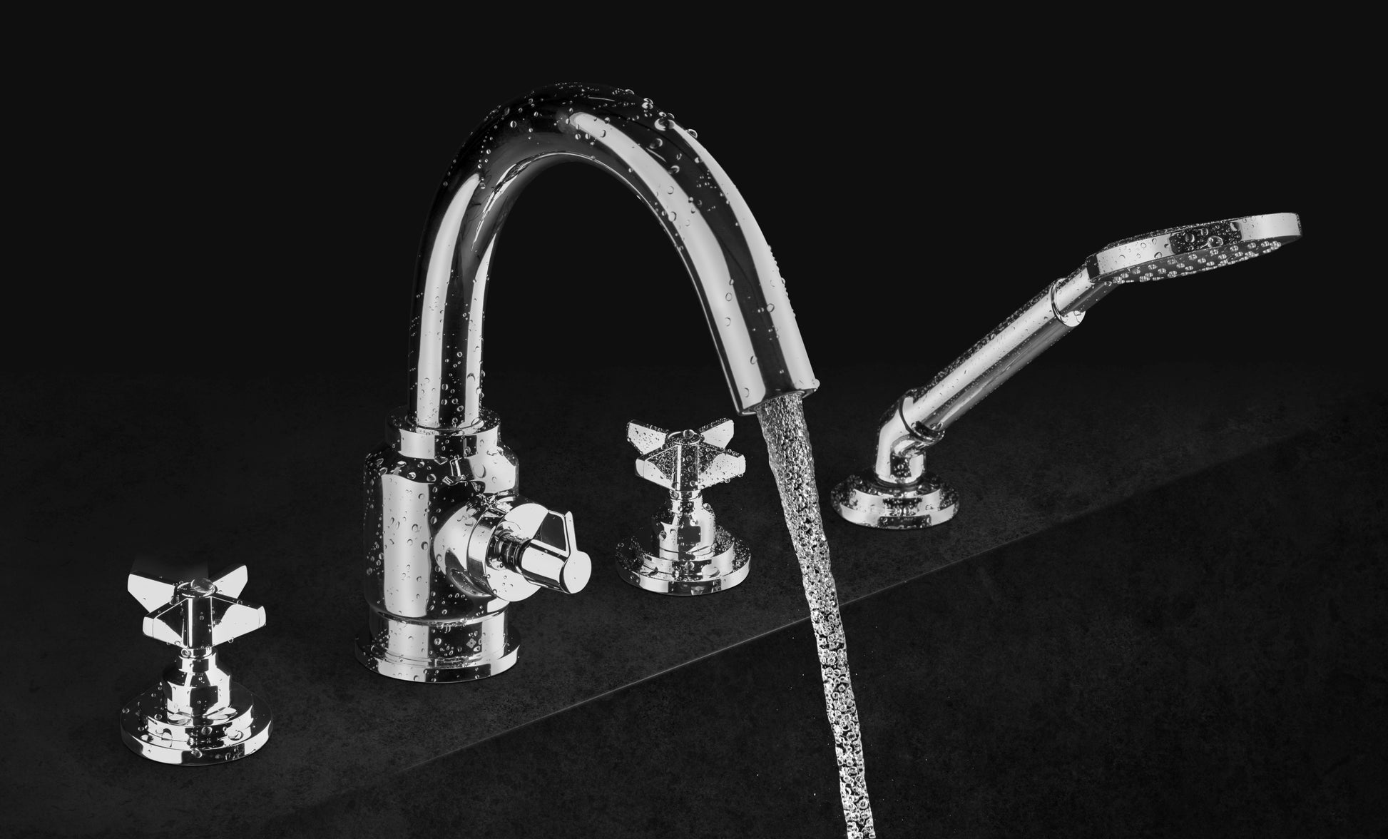 Deante TEMISTO 4-Loch Wannenarmatur im Retro-Look Zweigriff Chrom