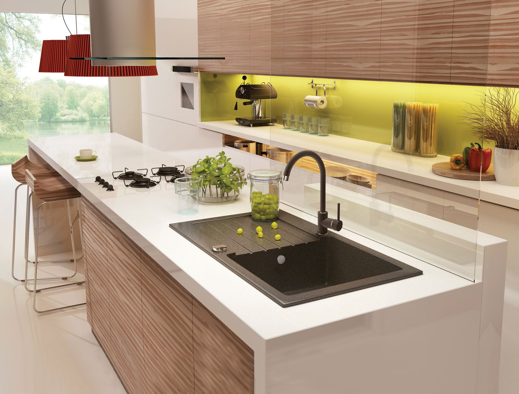 Für minimalistische oder skandinavische Küchen ist die ZORBA Granitspüle in elegantem Graphit die ideale Wahl. Das großzügige 76 cm Modell bietet ein geräumiges Becken und eine weite Abtropffläche für maximalen Arbeitskomfort. Der feine metallische Glanz der Aluminiumpartikel verleiht der Oberfläche eine luxuriöse Note. Zum Set gehört eine farblich perfekt abgestimmte Armatur mit hohem U-Auslauf, die das Befüllen großer Töpfe erleichtert. Das Material ist extrem hart, hitzebeständig bis 250 °C und besonders pflegeleicht.