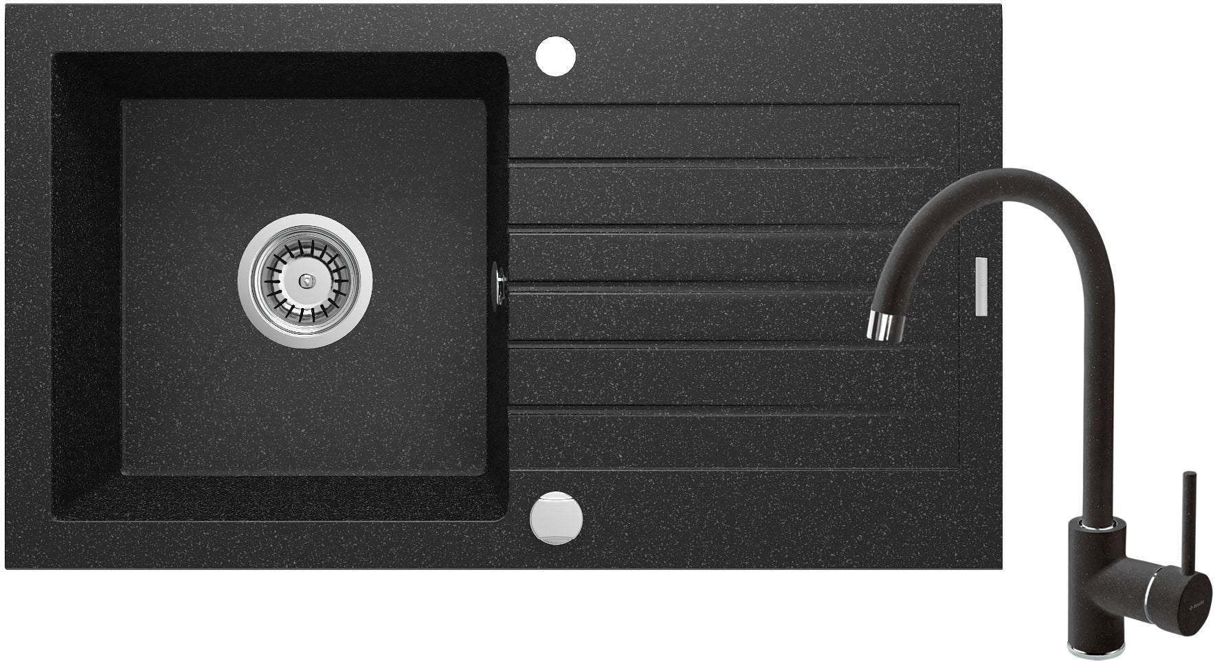 Deante ZORBA Granitspüle mit Abtropffläche + Armatur (Küchen-Set) 76 x 44 cm Graphit